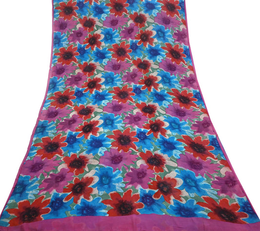 Women Vintage Sari multi Pure Georgette Silk Printed Saree Craft Fabric Sewing 6Yard Soft Light Dress Making Floral