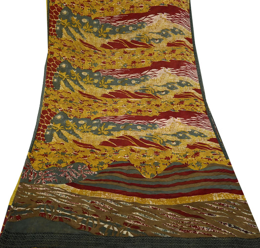 Vintage Sari Georgette Digital Printed Saree Sewing 6yard Craft Soft Crafting Dress Making Crafting Quilting Upcycle Used