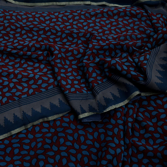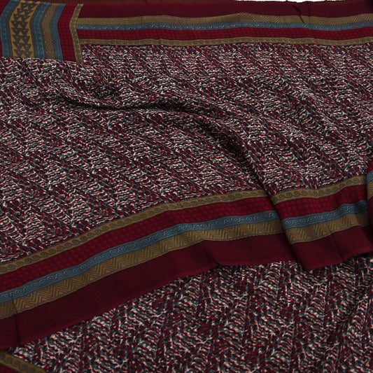 Indian Vintage Sari Maroon & Blue 100% Pure Georgette Silk Printed Sarees Sewing 5yd Craft Soft Dress Designing for Crafting Abstract