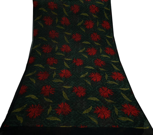 Indian Vintage Sari Green 100% Pure Georgette Silk Printed Sarees Sewing 6-yards Craft Soft Dress Designing for Crafting Floral Quilting