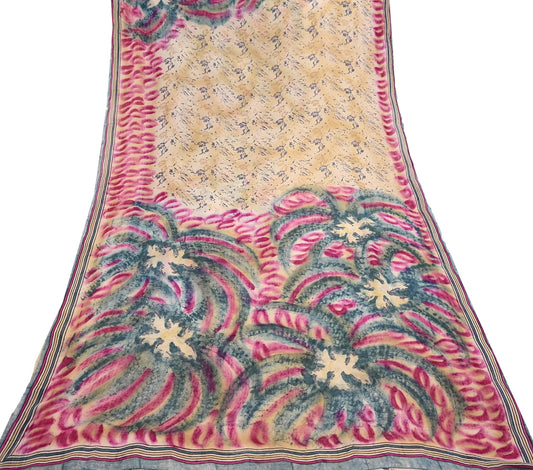 Indian Women Vintage Sari Beige 100% Pure Georgette Silk Printed Saree Sewing 5yd Soft Craft Fabric Dress Making Dress Designing