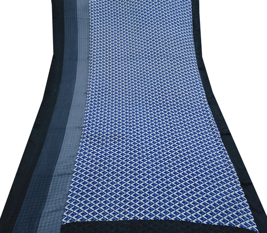 Women Vintage Sari gray & ivory Pure Georgette Silk Digital Printed Saree Craft Fabric Sewing 5Yd Light Dress Making Geometric Crafting