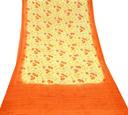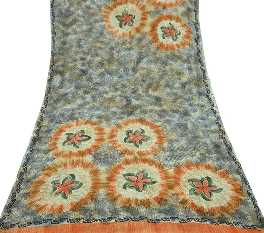 Indian Vintage Sari Orange & Gray Pure Georgette Silk Printed Sarees 5Yd Craft Fabric Sewing Quilting Dress making Crafting Dress Designing