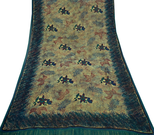 Indian Women Vintage Sari Beige 100% Pure Georgette Silk Printed Saree Sewing 5yd Soft Craft Fabric Dress Making Dress Designing
