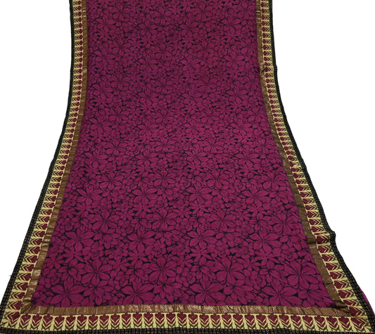 Indian Vintage Sari Purple & Black Pure Georgette Silk Printed Sarees 6Yd Craft Fabric Sewing Soft Dress Making Floral Quilting Used Upcycle
