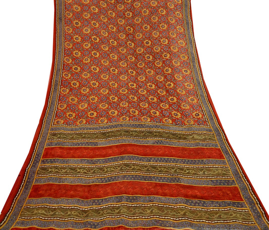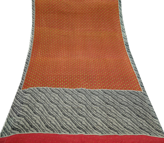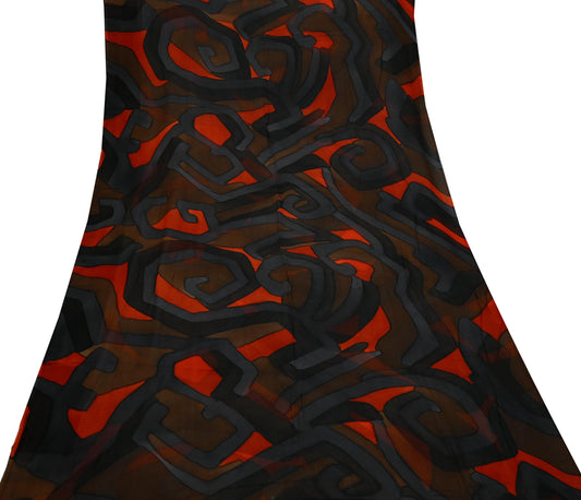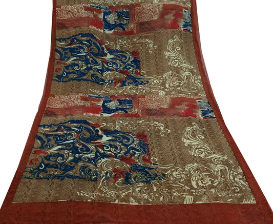 Indian Vintage Sari Brown & Maroon Pure Georgette Silk Printed Saree Craft Fabric Sewing 5Yd Soft Dress Making Crafting Quilting Upcycle