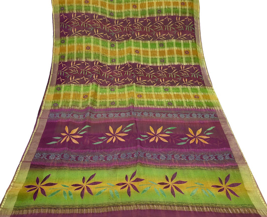 Indian Vintage Sari Green & Purple Pure Georgette Silk Printed Sarees Craft Fabric Sewing 6Yd Soft Sari Dress Making Crafting Quilting