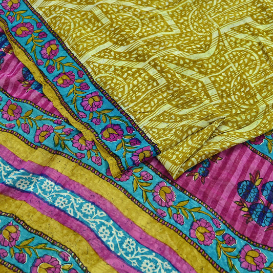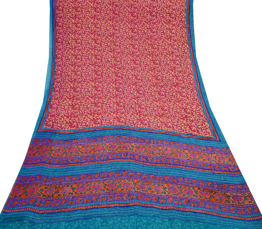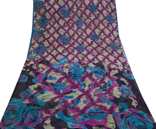 Vintage Sari Multi Pure Georgette Silk Printed Saree Sewing 5yd Craft Soft Floral Dress Designing for Crafting Quilting Upcycle