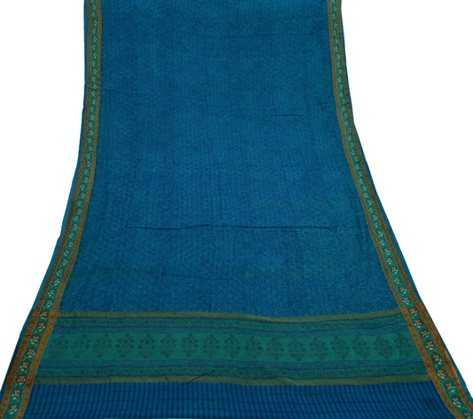Vintage Sari Blue & Green 100% Pure Georgette Silk Printed Saree Sewing 6yd Craft Soft Dress Designing for Crafting Abstract