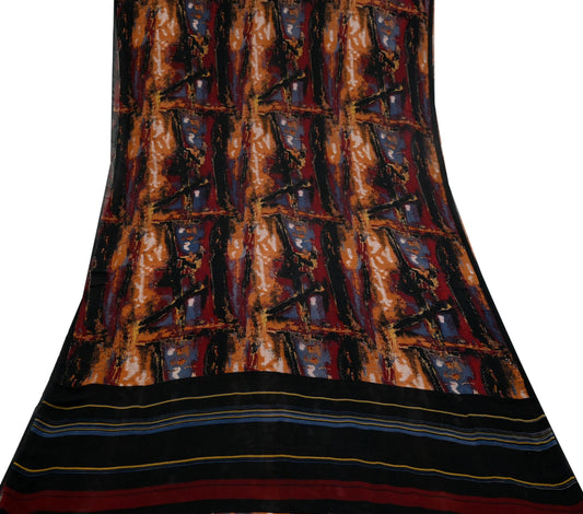 Women Vintage Sari Multi & Black Pure Georgette Silk Printed Saree Craft Fabric Sewing 6Yard Soft Light Dress Making Floral Dressmaking