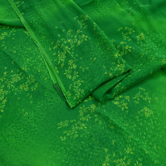 Women Vintage Sari Green Pure Georgette Silk Printed Saree Craft Fabric Sewing 5Yd Soft Light Dress Making Abstract Crafting Quilting