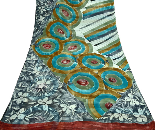 Indian Vintage Sari Multi Pure Georgette Silk Printed Sarees 5Yd Craft Fabric Sewing Soft Dress Making Geometric Quilting Used Upcycle