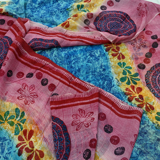 Vintage Sari Multi Pure Georgette Silk Printed Saree Sewing 5yd Craft Soft Floral Dress Designing for Crafting Quilting Upcycle Parsi Border