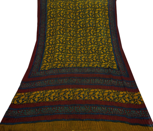 Women Indian Vintage Sari yellow Pure Georgette Silk Printed Sarees Craft Fabric Sewing 5Yd Soft Dress Making Quilting Crafting