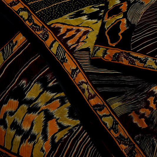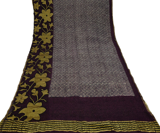 Indian Women Vintage Sari Black & Brown 100% Pure Georgette Silk Printed Saree Sewing 5yd Soft Craft Fabric Dress Making Dress Designing