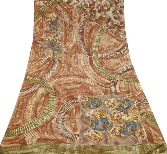 Indian Vintage Sari Beige & Peach Pure Georgette Silk Printed Sarees 6Yd Craft Fabric Sewing Quilting Dress making Crafting Quilting Upcycle