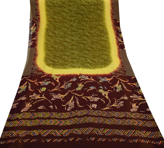 Women Vintage Sari Green & Brown Pure Georgette Silk Printed Saree Craft Fabric Sewing 5Yard Soft Light Dress Making Floral