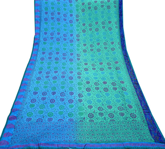 Indian Vintage Sari Blue & Green 100% Pure Georgette Silk Printed Sarees Sewing 5yd Craft Soft Dress Designing for Crafting Abstract Upcycle