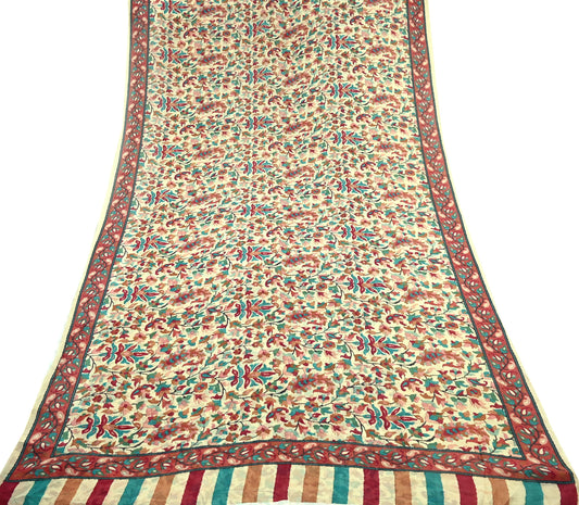 Indian Vintage Sari Beige Pure Georgette Silk Printed Sarees 5Yd Craft Fabric Sewing Quilting Dress making Crafting Quilting Upcycle