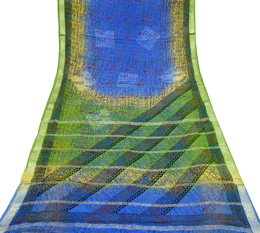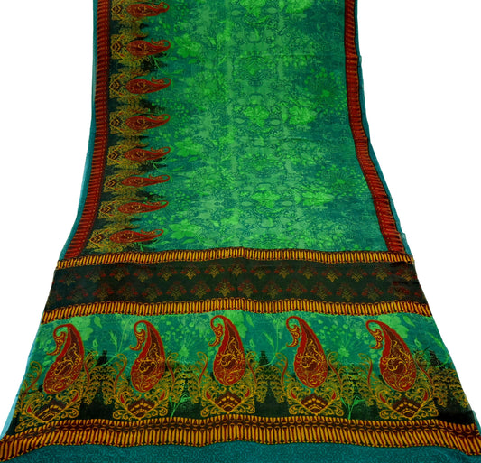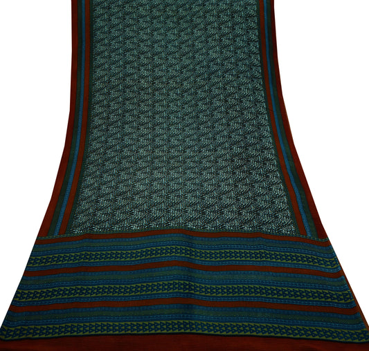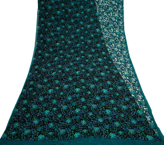 Indian Vintage Sari Green & Blue Pure Georgette Silk Printed Sarees Craft Fabric Sewing 5Yd Soft Sari Dress Making Crafting Quilting Upcycle