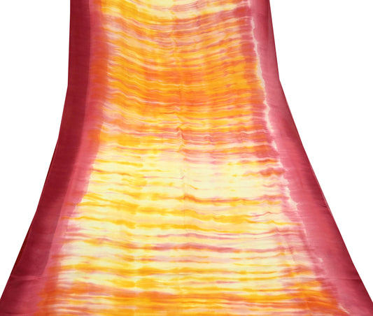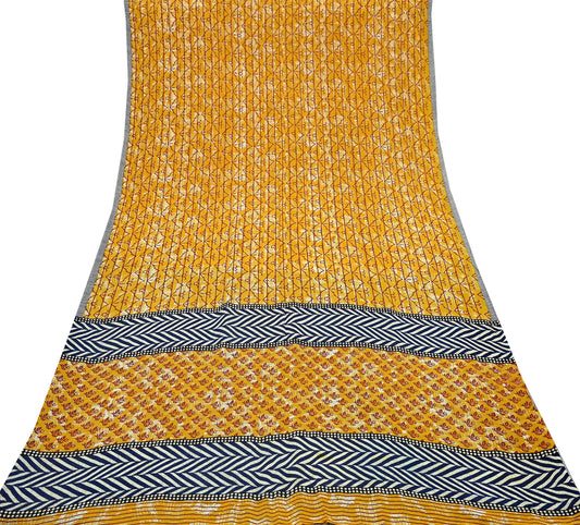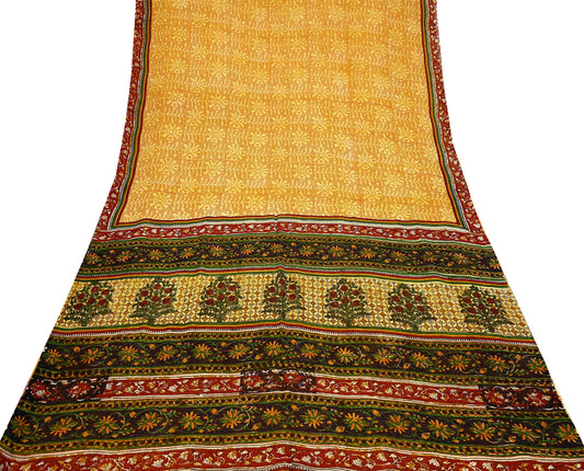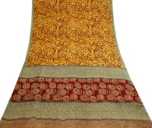 Indian Vintage Sari Saffron & Yellow 100% Pure Georgette Silk Block Printed Sarees Sewing 5yd Craft Soft Dress Designing for Crafting