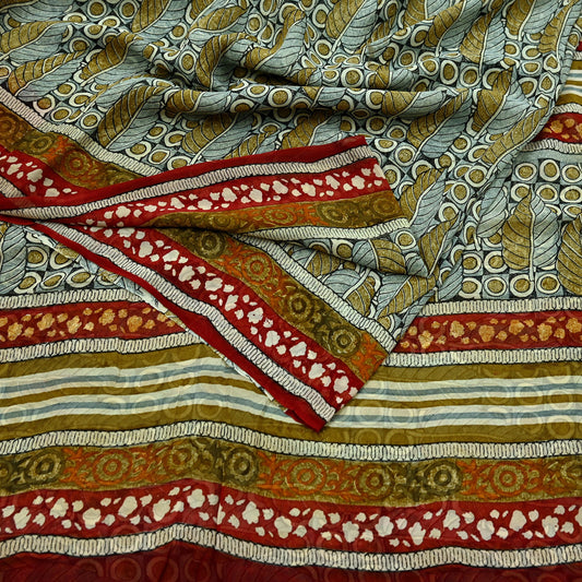 Indian Vintage Sari Pure Georgette Silk Printed Saree Craft Fabric Sewing 5Yd Soft Light Dress Making Abstract Crafting Quilting