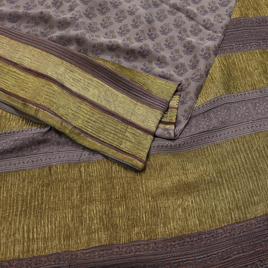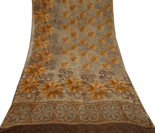Women Vintage Sari Brown Pure Georgette Silk Printed Saree Craft Fabric Sewing 6Yard Soft Light Dress Making Floral Zari