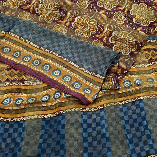 Indian Vintage Multi Saree 100% Pure Georgette Silk Printed Sari Sewing 5yd Craft Soft Dress Designing for Crafting Floral Quilting Upcycle