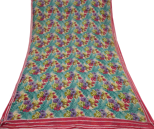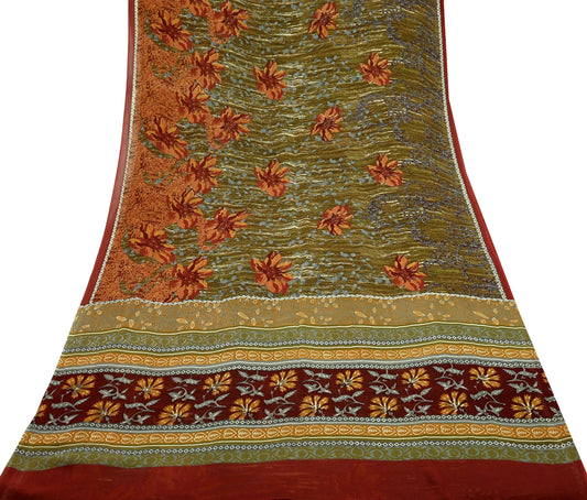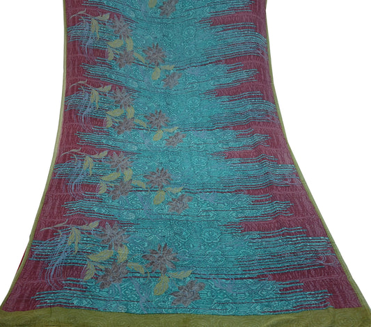 Women Vintage Sari Green & Maroon Pure Georgette Silk Printed Saree Craft Fabric Sewing 5Yard Soft Light Dress Making Floral