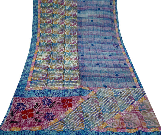Vintage Sari Multi Pure Georgette Silk Printed Saree Sewing 6yd Craft Soft Floral Dress Designing for Crafting Quilting Upcycle