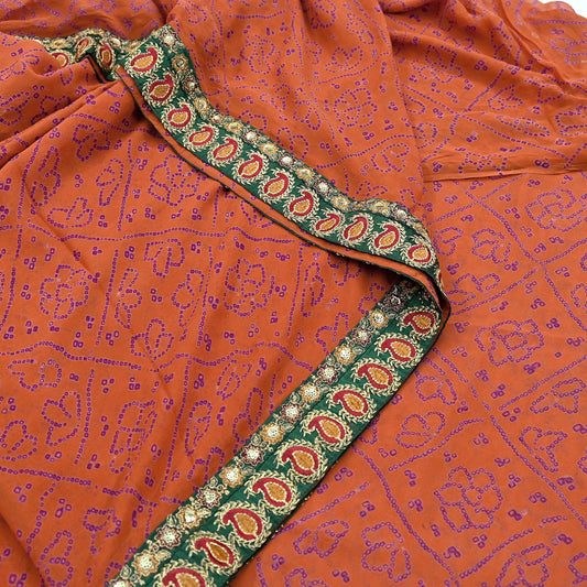Indian Vintage Orange Saree Pure Georgette Silk Hand Embroidered Bandhani Printed Sari Craft Fabric 5yd Soft Sequins Dress making Crafting