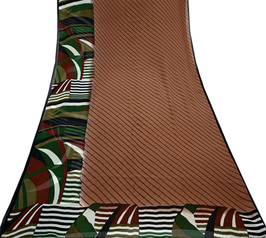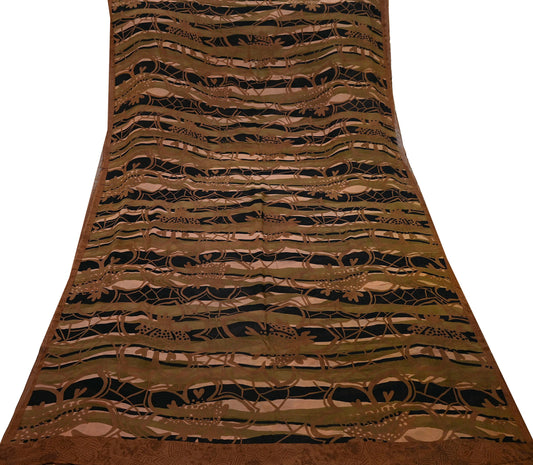 Indian Vintage Brown Saree 100% Pure Georgette Silk Printed Sari Sewing 5yd Craft Soft Dress Designing for Crafting Abstrac