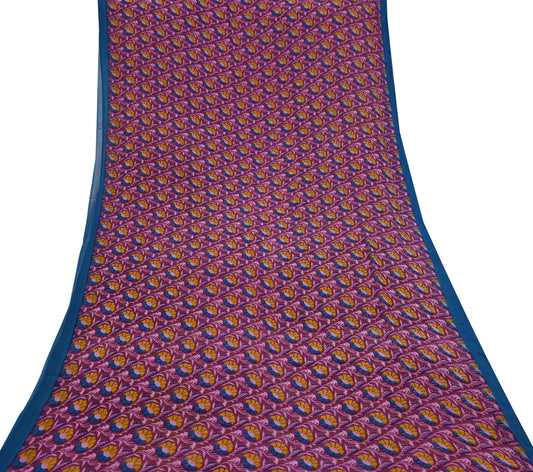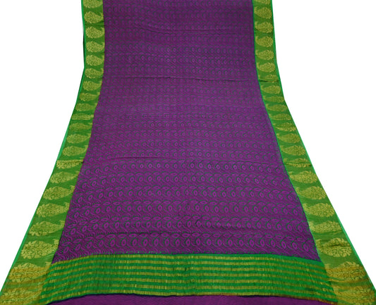 Women Vintage Sari Purple & Green Pure Georgette Silk Printed Saree Craft Fabric Sewing 5Yard Soft Light Dress Making Floral Zari