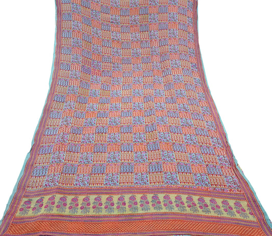 Indian Vintage Sari 100% Pure Georgette Silk Block Printed Sarees Sewing 5yd Craft Soft Dress Designing for Crafting Abstract