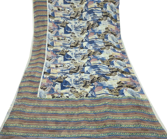 Indian Vintage Sari Ivory & Multi Pure Georgette Silk Printed Sarees 6Yd Craft Fabric Sewing Quilting Dress making Crafting Quilting Upcycle
