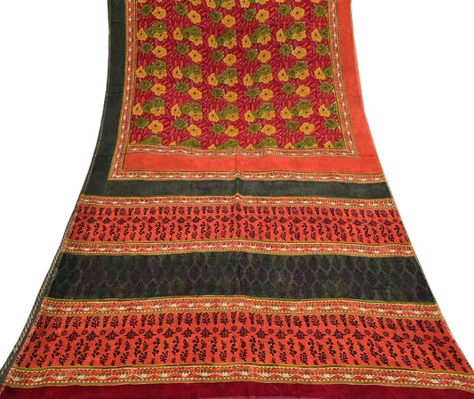Indian Vintage Saree Red & Orange Pure Georgette Silk Printed Sari Sewing 5yd Craft Soft Floral Dress Designing for Crafting