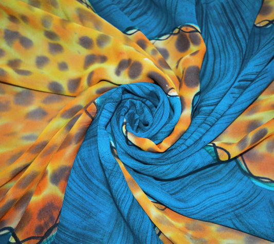 Indian Vintage Sari Blue 100% Pure Georgette Silk Leopard Printed Saree Sewing 5yd Craft Soft Dress Designing for Crafting Floral