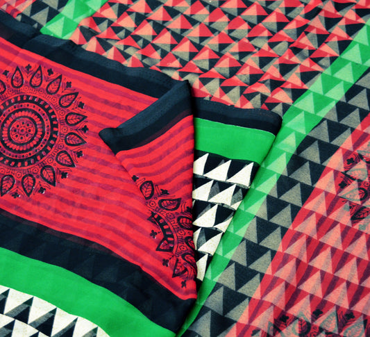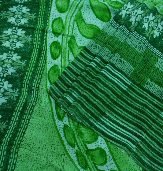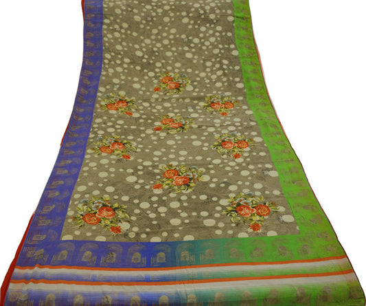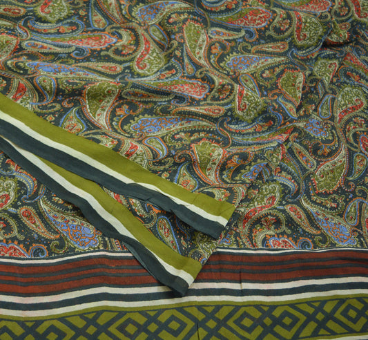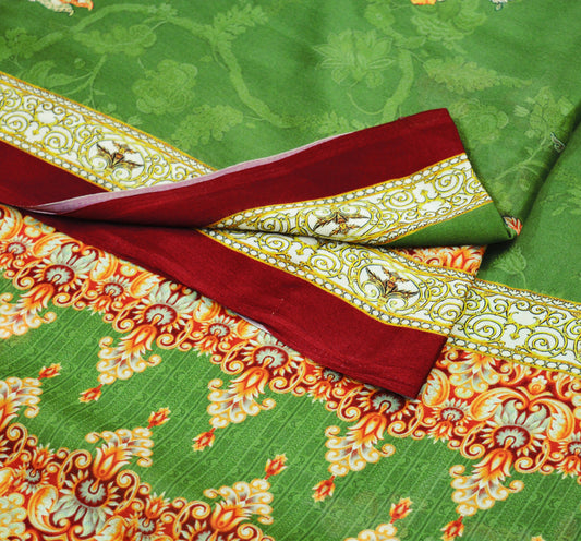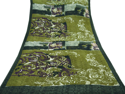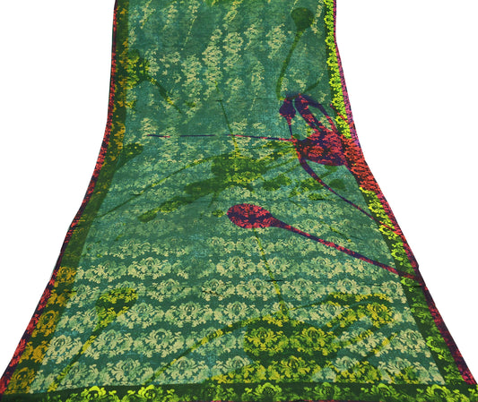 Vintage Sari Green Georgette Digital Printed Saree Sewing 6yard Craft Soft Crafting Dress Making