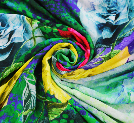 Vintage Sari Multi Blend Georgette Digital Printed Saree Sewing 5yd Craft Soft Floral Crafting Dress Making