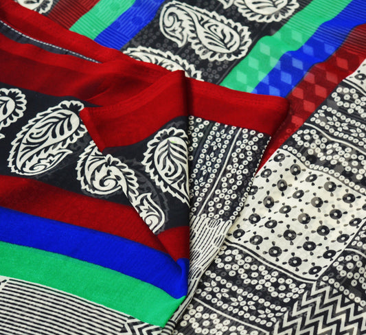 Vintage Sari Multi Pure Georgette Silk Printed Saree Sewing 5yd Craft Soft Abstract Dress Designing for Crafting