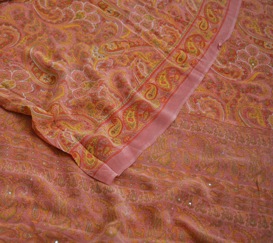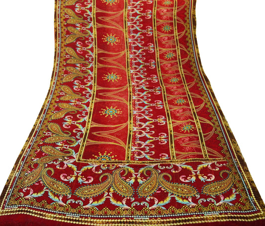 Indian Women Vintage Sari Red Pure Georgette Silk Digital Printed Sarees 5Yd Craft Fabric Sewing Light Dress Making Paisley Quilting Upcycle