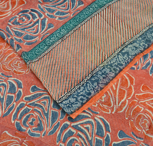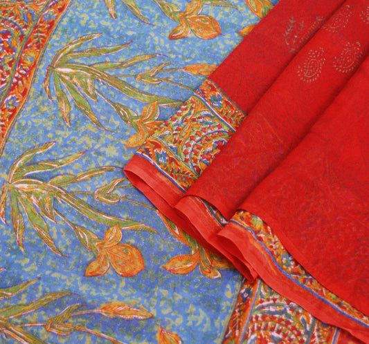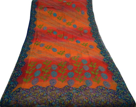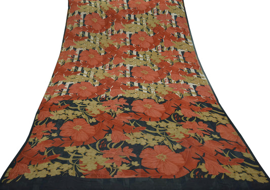 Vintage Sari Orange & Red Pure Georgette Silk Printed Saree Sewing 5yd Craft Soft Floral Dress Designing for Crafting