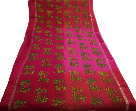 Indian Vintage Sari Red & Pink Blend Georgette Printed Saree Sewing 5yard Soft Craft Floral Design Wrap Boho