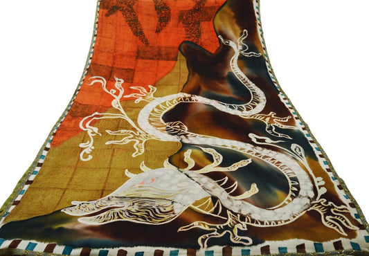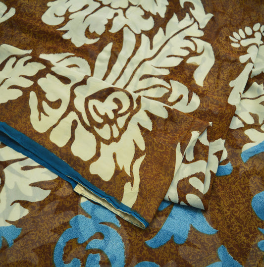 Indian Vintage Sari Brown Pure Georgette Silk Digital Printed Saree Sewing 5yard Craft Soft Floral Crafting Dress Making