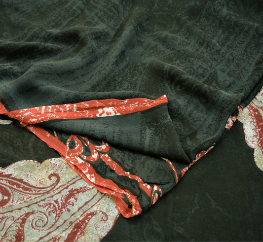 Vintage Sari Black 100% Pure Georgette Silk Printed Saree Sewing 5yd Craft Soft Dress Designing for Crafting Floral