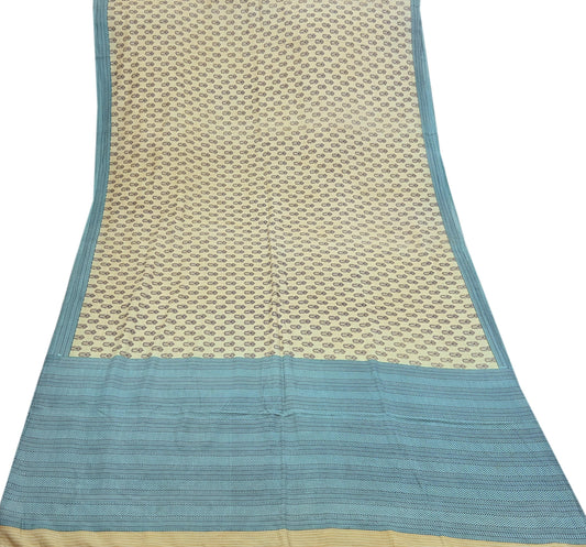 Indian Vintage Beige & Green Saree Pure Silk Printed Sari 6yd Sewing Craft Fabric Dress Making Soft Crafting Quilting Quilting Upcycle