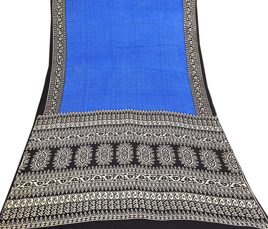 Indian Vintage Black & Blue Sarees Pure Silk Printed Sari 6yd Sewing Craft Fabric DressMaking Floral Soft Crafting Quilting