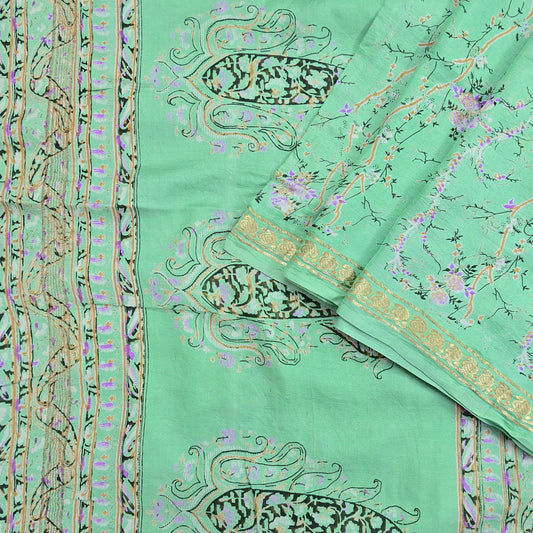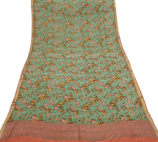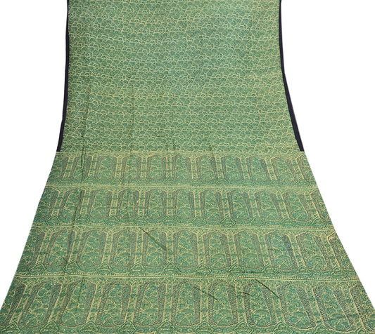 Indian Vintage Sari Green Pure Silk Printed Saree Craft Fabric 5yard Sewing DressMaking Soft Wrap Floral Zari Crafting Quilting Upcycle