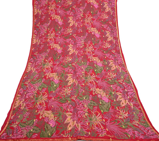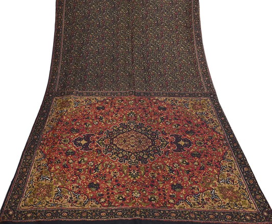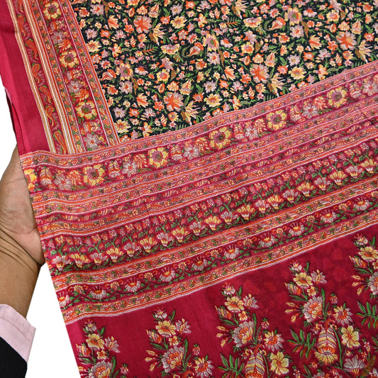 Indian Vintage Red & Black Pure Silk Printed Saree 5 Yards Soft Floral Fabric for Dressmaking, Quilting, Crafting, Sewing, Dress Making