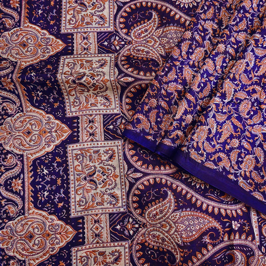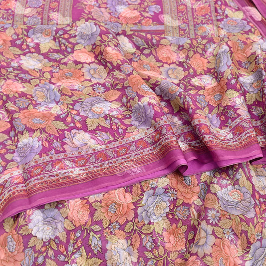 Vintage Purple Pure Silk Saree Indian Printed Silk Fabric 6Yards Boho Craft Material for Sewing, Quilting, Dressmaking, Upcycling
